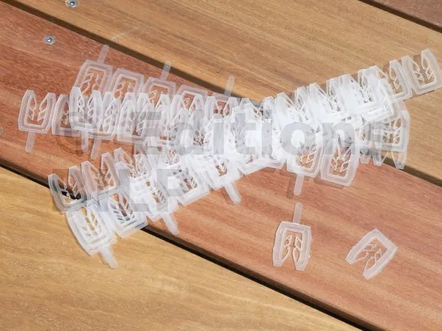 Chaque cale comporte un peigne intérieur (ou fourchette) qui permet de clipser la cale, ou un ensemble de cales, sur une vis. On peut clipser efficacement sur des vis, ou tirefond, ou tige filetée, de diamètres allant de 3 à 9 mm. Ainsi, la cale reste sur son support même si celui-ci bouge. La moitié des cales comporte une petite languette qui vous permettra de l’insérer et la pousser facilement sous un espace restreint, sous une lambourde par exemple.