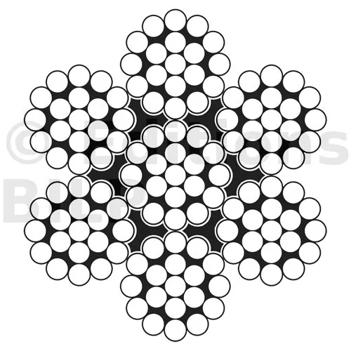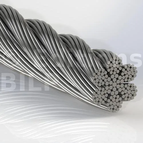 Câble constitué de 7 torons, chacun composé de 19 fils fins torsadés ensemble. Cette configuration confère au câble une grande flexibilité, lui permettant de se courber et de se manipuler facilement sans se casser ni se dégrader.