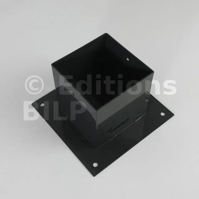 Il permet la fixation des poteaux sur une dalle ou un plot en béton.