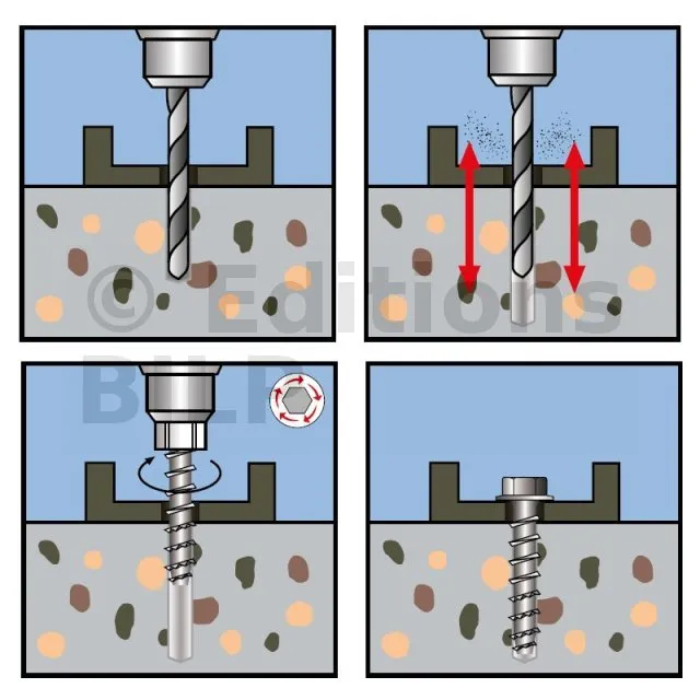 Vis HECO MULTI-MONTI-PLUS SS - tête hexagonale avec embase - zingué blanc - D20x L100 - Réf. 54275