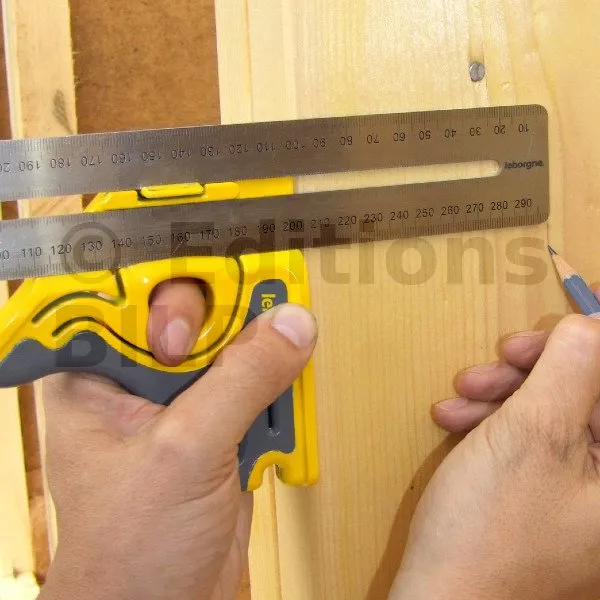 - Axe central du réglet évidé pour permettre le tracé d’un axe,