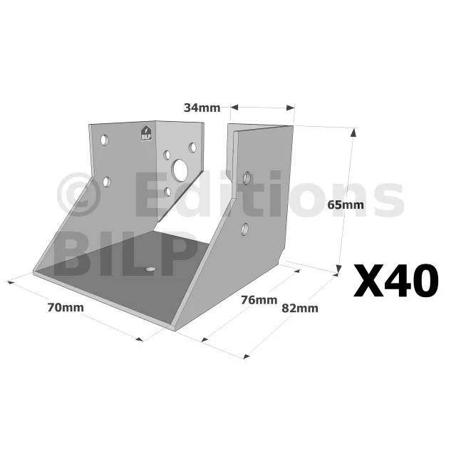 On admet une tolérance de 2 mm maximum entre l‘épaisseur du bois et la largeur du sabot. Exemple : un sabot plié à 76 mm peut porter une épaisseur de bois de 74 mm.