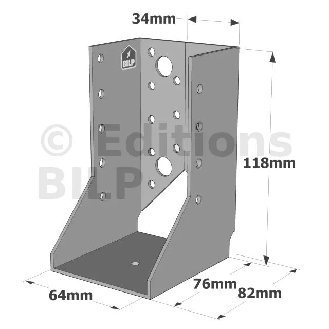 - Robustesse et discrétion : Grâce à leur conception en acier galvanisé, ces sabots sont robustes et résistent aux conditions climatiques difficiles. Les ailes intérieures permettent une intégration discrète, préservant l’esthétique de la structure.