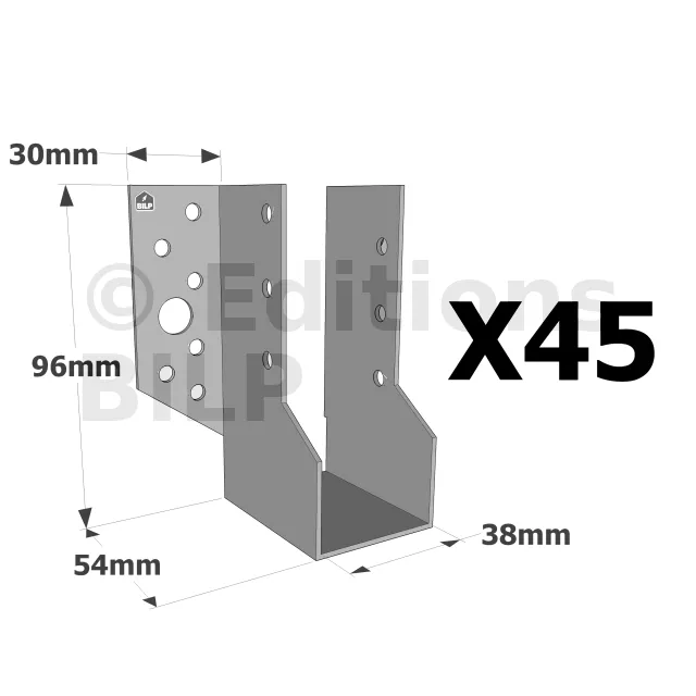 Sabots à ailes extérieures, gamme SBE ECONOMIQUE (épaisseur 1,5mm, profondeur 55mm) - Réf. SBE38/96_45