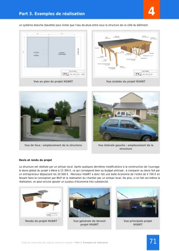 Guide complet fournissant une compréhension des obligations techniques et permettant l'établissement serein des projets de construction de car-ports Un texte aéré facilitant la lecture Des illustrations pour se rendre compte du visuel des projets Très bien !