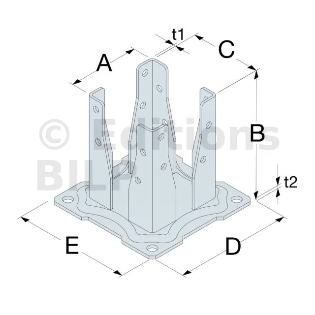 Pied de poteau carré ouvert pour jardin - Finition GALVANISEE