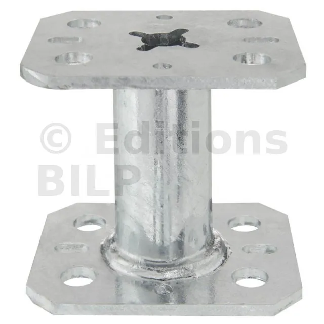 | Pieds de poteau fixes PPA | • Très forte capacité de charge • Platine large et rigide • Finition galvanisée à chaud | • Hauteur non réglable • Empreinte plus importante |