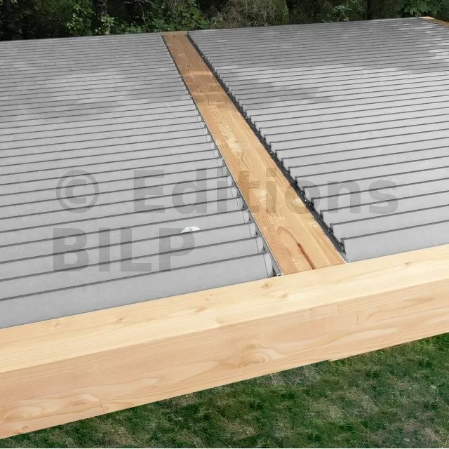 L’eau est collectée dans la rigole intégrée à la lame. Sous l’effet de la gravité, elle s’écoule ensuite de part et d’autre à chaque extrémité de la lame. Si vous recherchez une étanchéité totale, nous vous conseillons d’ajouter des chenaux qui viendront récupérer l’eau à chaque extrémité et la rediriger vers l’extérieur.