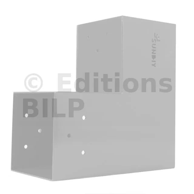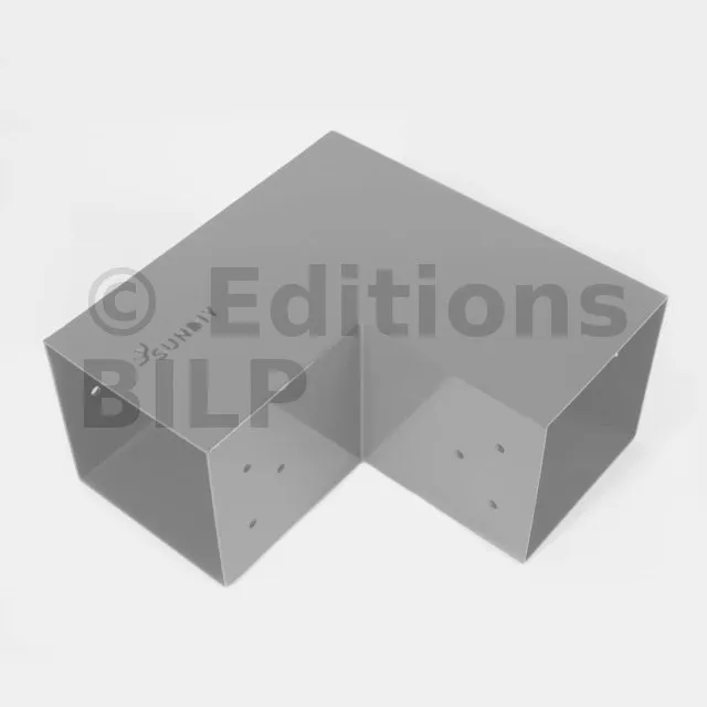 Il est utilisé dans un angle extérieur. Ce connecteur va permettre de raccorder une grosse poutre 120x120mm perpendiculairement à une autre poutre ou à un poteau vertical 120x120mm.