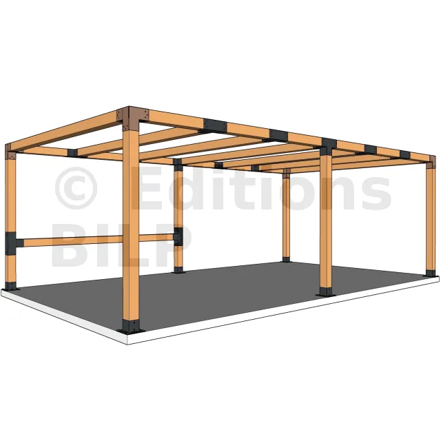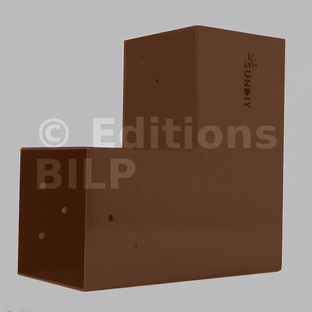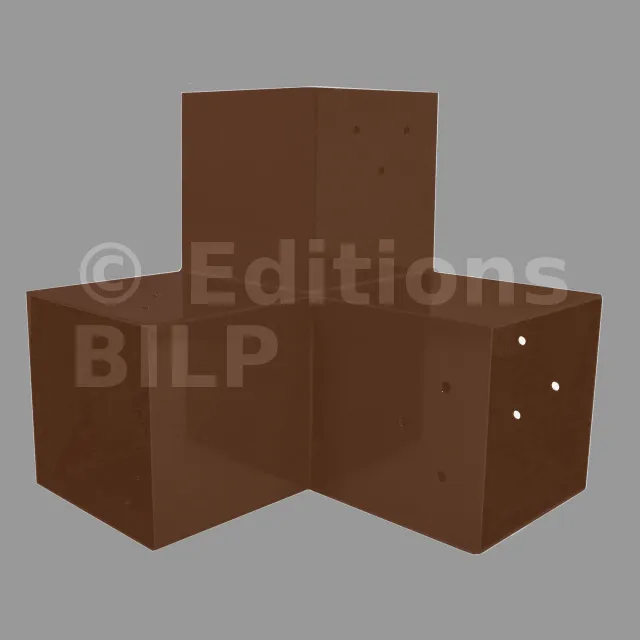 Il est utilisé dans un angle extérieur. Ce connecteur va permettre de raccorder une grosse poutre 120x120mm perpendiculairement à une poutre 120x120mm, le tout étant supporté par un poteau vertical 120x120mm.