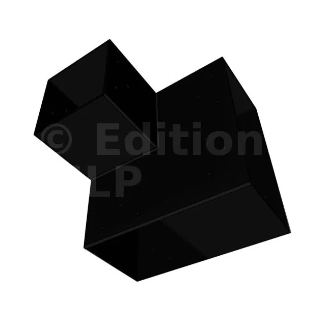 Il est utilisé dans un angle extérieur. Ce connecteur va permettre de raccorder une grosse poutre 240x120mm perpendiculairement à une poutre 120x120mm, le tout étant supporté par un poteau vertical 120x120 mm.