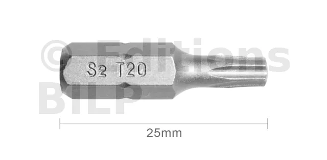 Embout T20 25mm (Qualité Professionnelle, Acier S2) - lot de 20 embouts - Réf. EmboutT20_20
