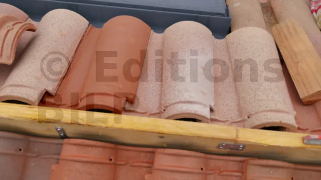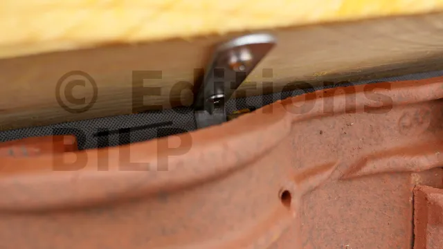 Les tuiles faîtières doivent être posées avec un léger espace de la surface des tuiles sous faîtière pour assurer une bonne ventilation. Pour ce faire, fixez des planches (lisses de rehausse) sur les chevrons à l’aide d’équerres de chaise standards et assemblez lisses de rehausse avec des connecteurs.