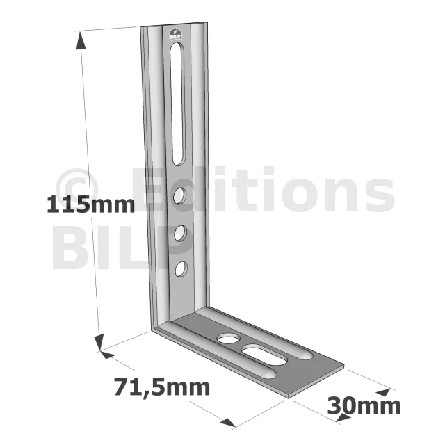 - Trous oblongs facilitant l’ajustement des assemblages,
