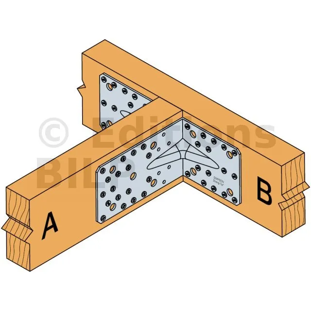 - Fixation poteau bois sur poutre bois2 équerres Aile A : 18 CNA Ø4.0x35 ou Ø4.0x50 mm ou Aile B : 16 CNA Ø4.0x35 ou Ø4.0x50 mm