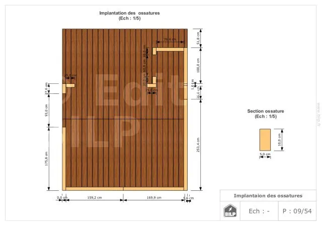 - Porté : bois massif, bois composite, lamellé collé, fermes triangulées, profilés, ...