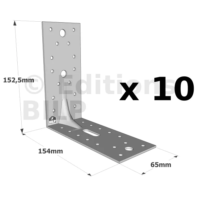 Équerres renforcées CLASSIQUES asymétriques pour le BOIS et le BETON - Réf. E9/2.5_10