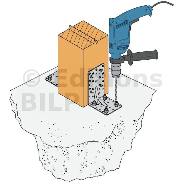 3. Si le support est en bois, l’équerre est aussi pointée ou vissée sur celui-ci.
