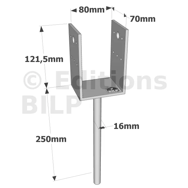 Pieds de poteau en U à sceller - Réf. PPD80/70G
