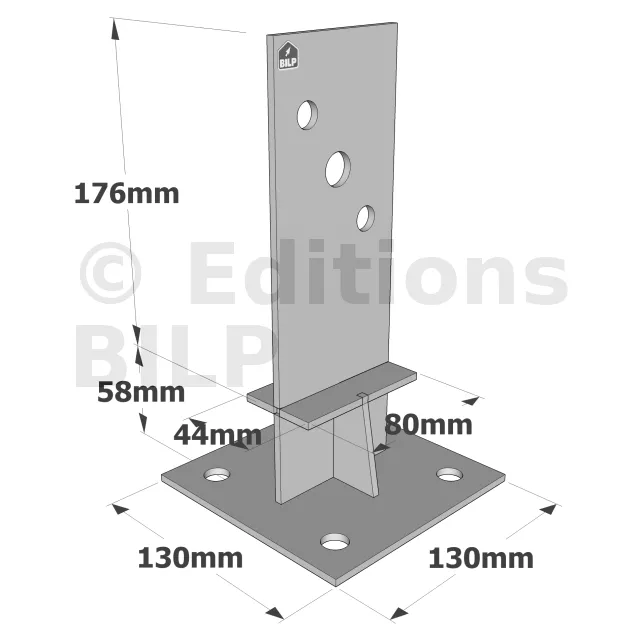 Les pieds de poteau en âme avec platine type PPSDT permettent la réalisation d‘assemblages discrets et fiables. Leur conception en âme assure des charges au soulèvement.