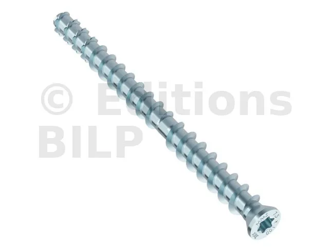 Vis composée de deux filets, la partie inférieure est destinée pour rentrer dans le béton et la partie supérieure pour rentrer dans le bois.