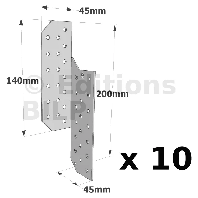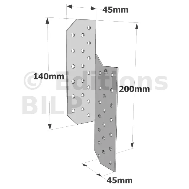 Patte de solivage DROITE - 45x200x2mm - Réf. PSD200/45/2_10