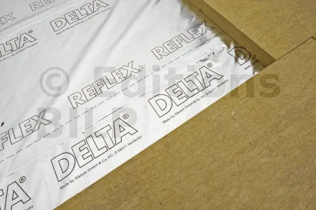 DELTA®-REFLEX est mis en œuvre sur la face chaude de la construction de manière continue en collant les recouvrements entre lés et les différents raccords latéraux ou sorties de conduits de ventilation.