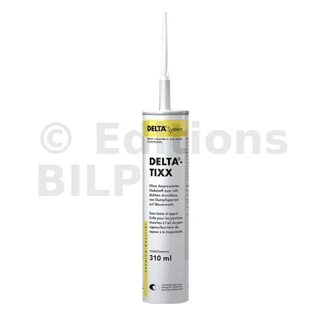 Offrez à vos chantiers une solution étanche et durable grâce au pare-vapeur DELTA® et à notre mastic d’étanchéité durablement élastique, exempt de solvants et à un très haut niveau d’adhésion. Notre produit est spécialement conçu pour réaliser des raccords entre le pare-vapeur DELTA® et les supports en enduits, béton, maçonnerie, métal, bois et autres. Sa Mise en œuvre est facile et rapide et ne nécessite pas d’autre fixation mécanique. Assurez-vous juste que le support est propre, sec et exempt de poussière. De plus, assurez-vous une ventilation suffisante pendant et après le séchage.