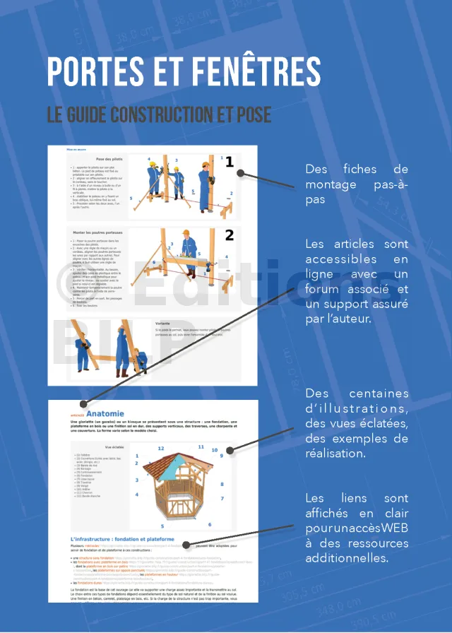 - Des informations concrètes pour votre projet. Tous les secrets, tous les trucs et les astuces pour réussir la réalisation des ouvertures. Toutes les techniques, tous les produits vous sont décrits de façon objective et indépendante. Des vues détaillées vous décrivent toutes les étapes de la construction.