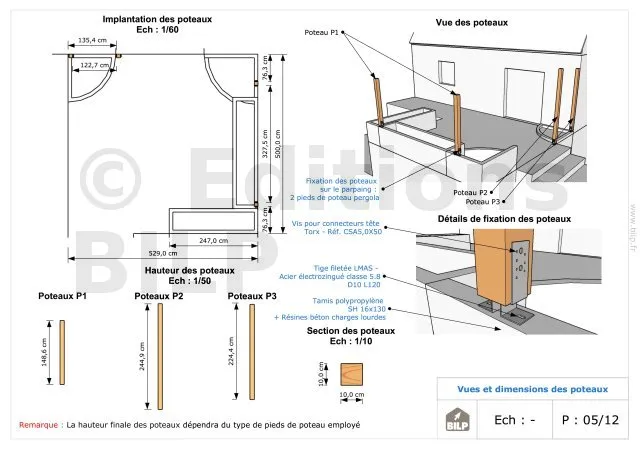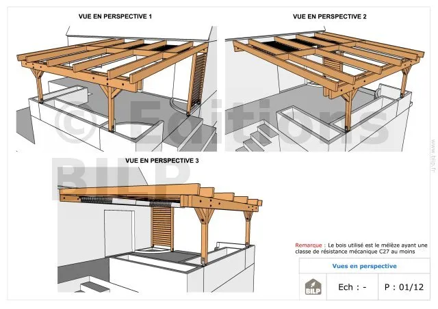Nous réalisons tous types de Plans de Pergola selon vos mesures et vos désirs. Ce dossier TECHNIQUE vous servira à CONSTRUIRE votre pergola vous-même.