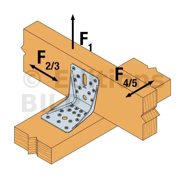 Pour obtenir les valeurs de résistance pour une seule équerre, il convient de diviser par deux les valeurs du tableau ci-dessus à condition que la poutre portée soit bloquée en rotation. Consulter notre ETE-06/0106 si la poutre est libre en rotation.