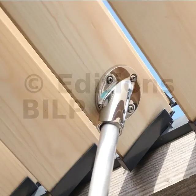 L’embase (partie femelle) se fixe sur une des lames. Pour actionner l’orientation des lames, la baguette est introduite dans l’embase puis retirée quand les lames sont dans la position désirée.