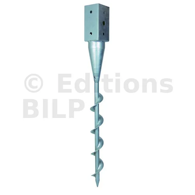 Les pieds de poteau carré à visser PPJST sont préconisés dans la réalisation de petits ouvrages tels que les clôtures de jardin. Ils se vissent dans le sol grâce à leur vis en tire-bouchon.