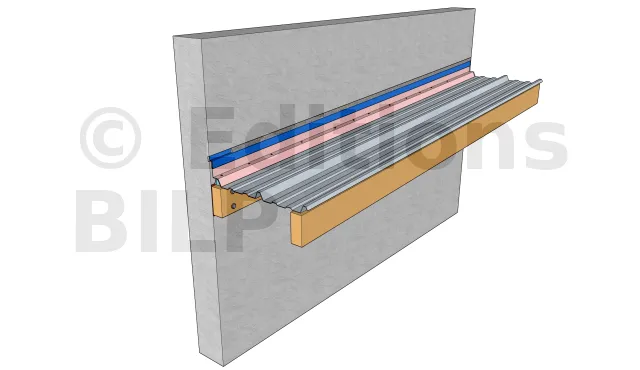 L’étanchéité face à la pluie du raccord entre le mur et la toiture est réalisée au moyen d’un solin qui est fixé au droit des mortiers. La fixation de la toiture au support se fait par des chevilles à expansion enfoncées au minimum à 60 mm dans le mur.