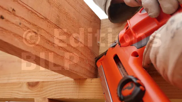 5. Présenter la poutre portée dans le sabot et la fixer en clouage partiel ou total