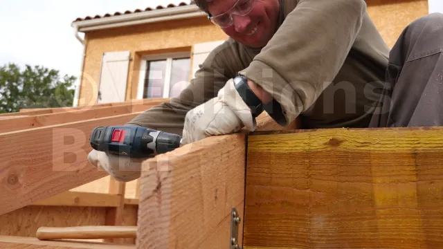 5. Présenter la poutre portée dans le sabot avant de la fixer