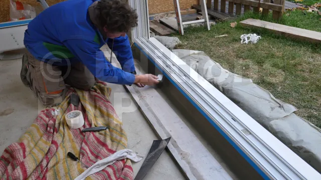 Les cales servent à ajuster l’horizontalité du cadre, à répartir la charge sur le seuil de manière équilibrée afin d’éviter toute déformation et à créer un espace pour permettre l’expansion du joint compri-bande. Elles doivent être placées tous les 30 à 40 cm sous le cadre de la baie vitrée.