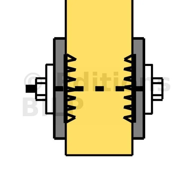 - Le montage des crampons se fait avec une presse hydraulique ou à l’aide d’une cale en bois dur et d’une masse,
