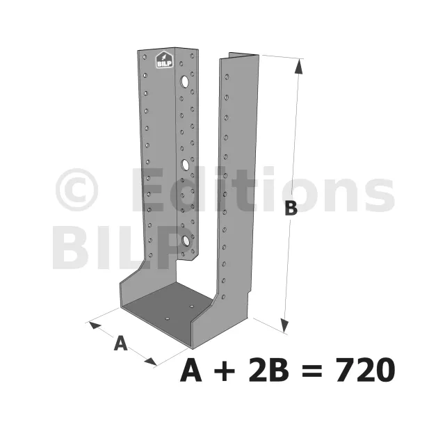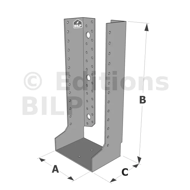Grands sabots à ailes intérieures, gamme GLI ECONOMIQUE (développé 720mm, épaisseur 2.5mm, profondeur 90mm) - Réf. GLI720/2.5X