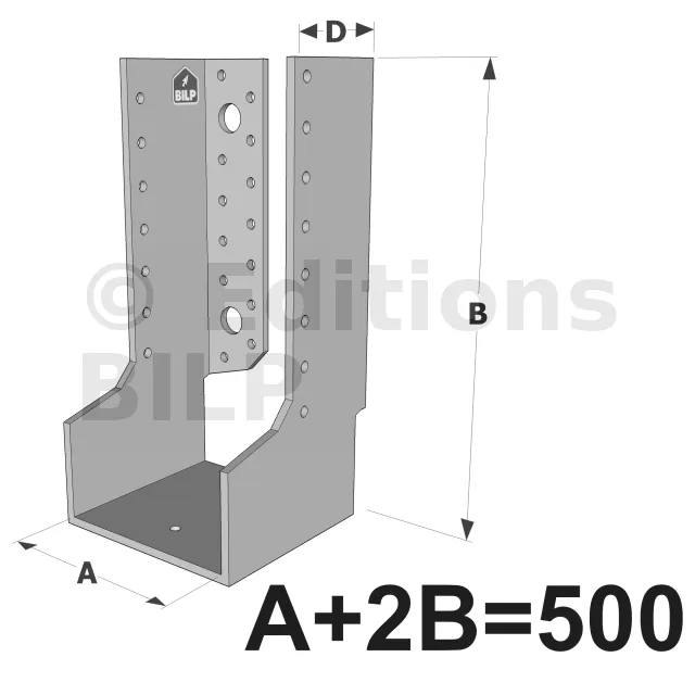 Grands sabots à ailes intérieures, gamme GLI ECONOMIQUE (développé 500mm, épaisseur 4mm, profondeur 90mm) - Réf. GLI500/4X