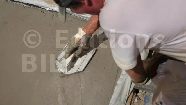 Le but de cette étape est de rendre la surface bétonnée la plus plane possible et d’enlever les petits trous non descellés lors du tirage de la règle.