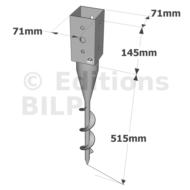 Pied de poteau carré de jardin à visser - Réf. PPJST70/660