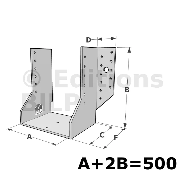 Grands sabots à ailes extérieures, gamme GSE CLASSIQUE (épaisseur 4mm, profondeur 110mm) - Réf. GSE500/4X-AL