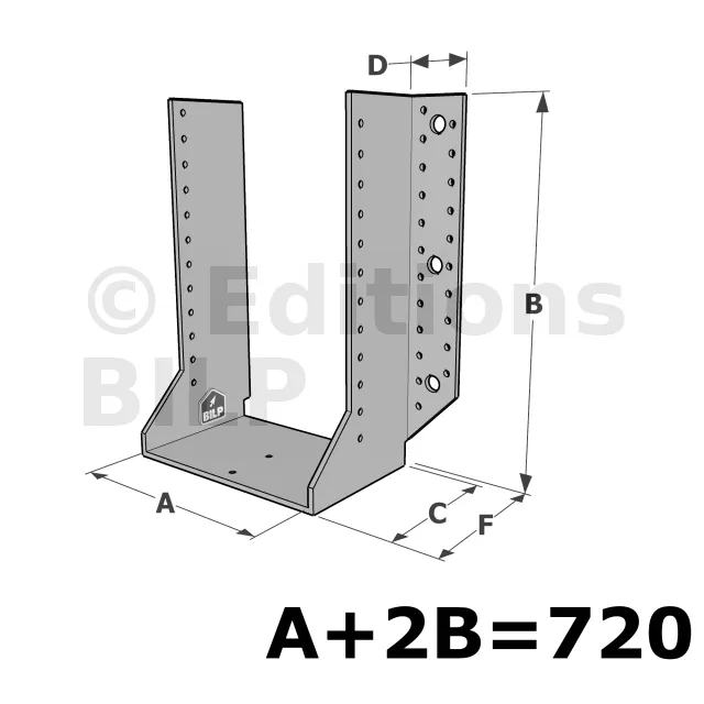 Grands sabots à ailes extérieures, gamme GSE CLASSIQUE (épaisseur 4mm, profondeur 110mm) - Réf. GSE720/4X-AL