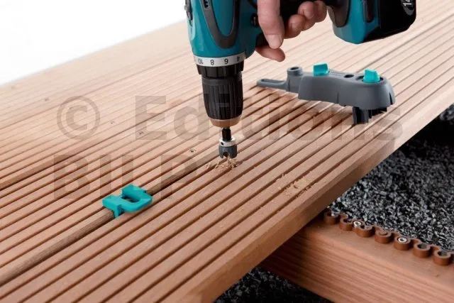 D’autre part, la majorité des lames de terrasse doivent être préperçées avant de pratiquer le vissage. C’est indispensable pour les bois durs tels que les bois exotiques, et obligtoire en extrémité de lames pour toutes les essences ; ceci afin d’éviter l’éclatement du bois.