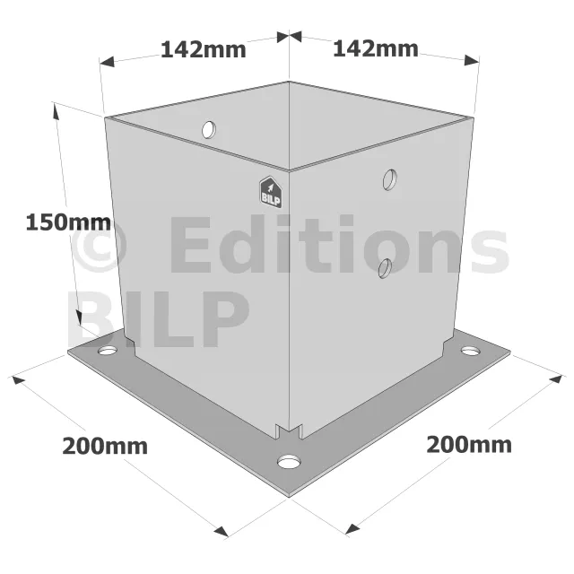 Pied de poteau carré à boulonner - Finition GALVANISEE - Réf. PPJBT140
