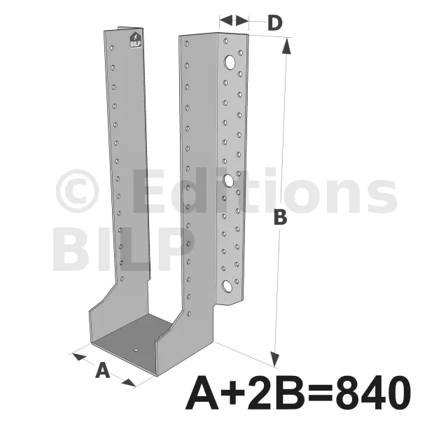 Grands sabots à ailes extérieures, gamme GLE ECONOMIQUE (développé 840mm, épaisseur 2.5mm, profondeur 90mm) - Réf. GLE840/2.5X