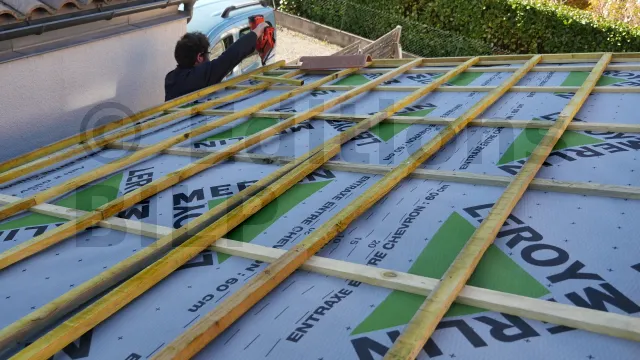 L’utilisation des chutes de lattes de la rangée précédente permet d’obtenir une disposition en quinconce des aboutages.