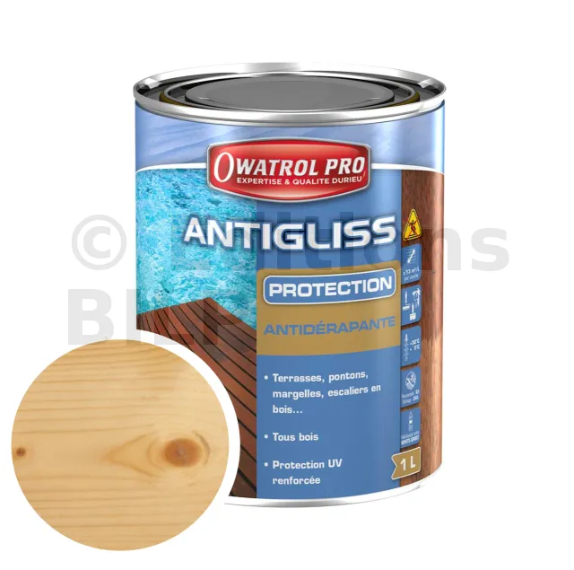 mélanger hélicoïdal approprié). - Sur support préparé, appliquer une couche d’ANTIGLISS sur la totalité de la lame dans le sens des fibres du bois.