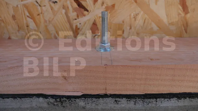 Nous utilisons trois vis D8L100 pour fixer les montants d’extrémités sur la lisse basse et une seule vis D8L100 par montant pour fixer les montants intermédiaires.